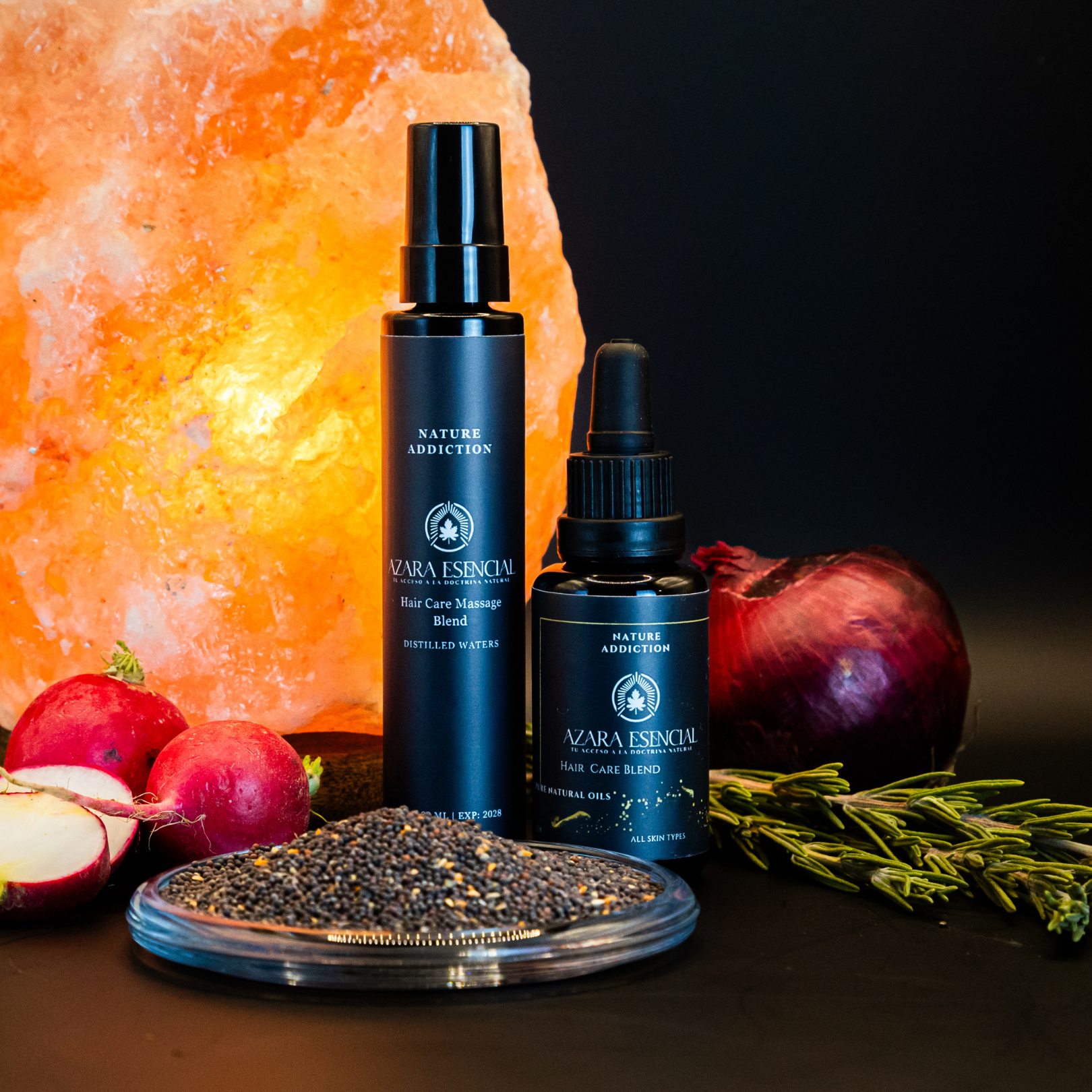 Restore strength, density, and vitality to your hair with Azara Natural Hair Care Blend — a dual-phase ritual combining 30 ml cold-pressed unrefined oils + 30 ml distilled botanical waters, designed to support hair growth, reduce hair loss, awaken a tired scalp, and enhance natural shine.